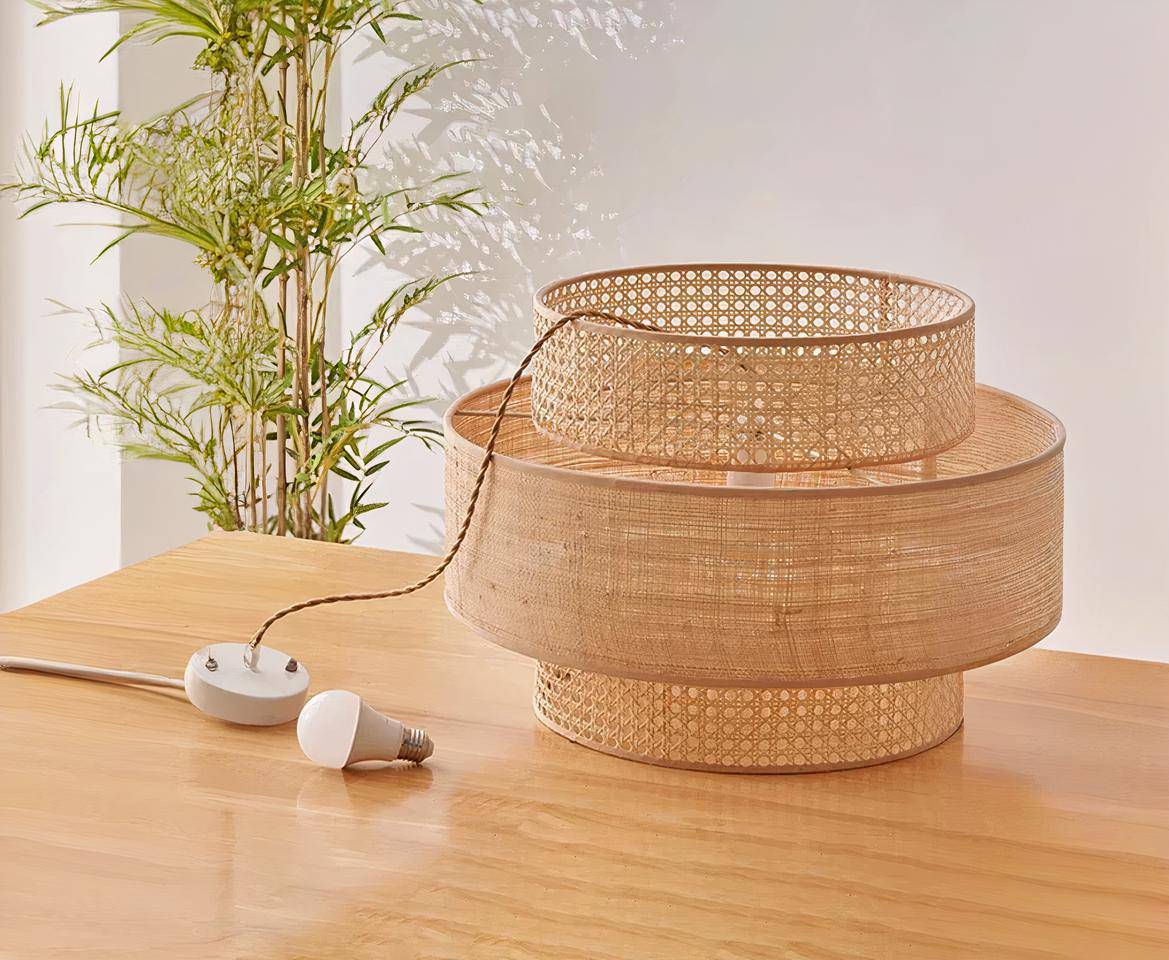 Découvrez le charme subtil du style japonais avec cette suspension en raphia et rotin. Ce luminaire, avec son design tissé à la main, évoque une ambiance zen, idéale pour les espaces recherchant calme et légèreté. Sa texture organique et sa couleur beige ajoutent une dimension apaisante à tout décor.