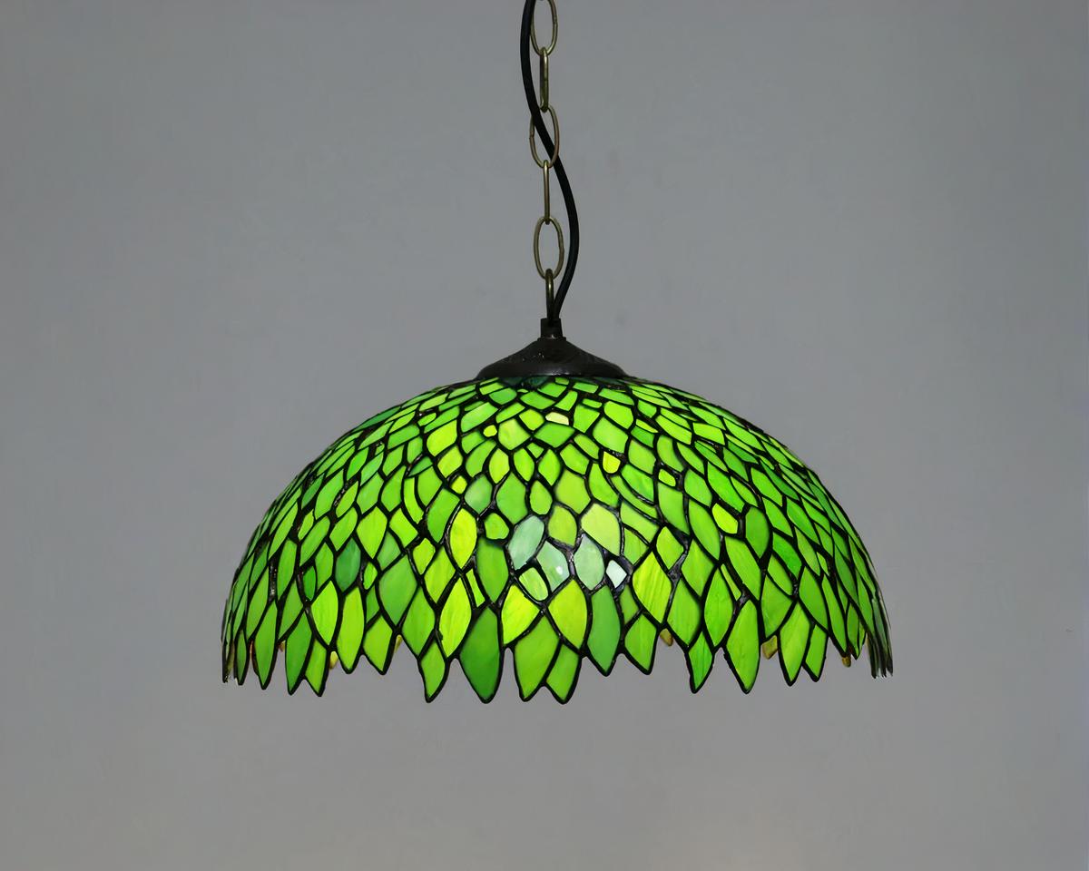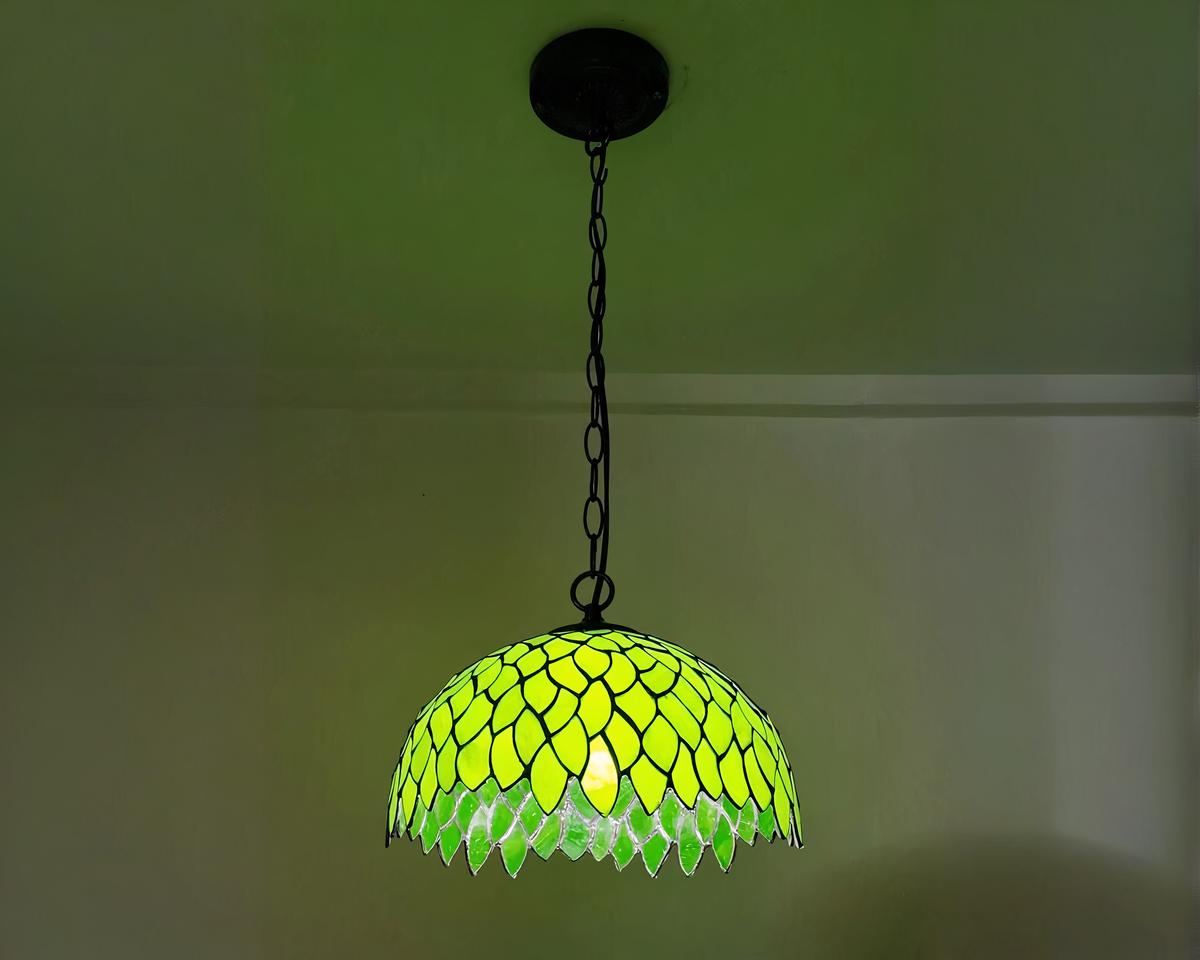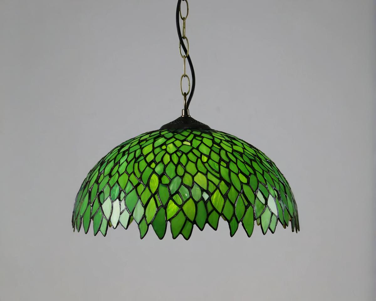 Le verre teinté de cette suspension style Tiffany verte diffuse une lumière douce et apaisante qui enveloppe votre pièce d'une atmosphère chaleureuse, la transformant en un véritable refuge accueillant. Que ce soit pour le salon, la chambre ou la salle à manger, cette lampe crée un éclairage subtilement tamisé, mettant en valeur chaque détail de votre décoration intérieure tout en ajoutant une touche d'élégance et de confort à votre espace de vie.